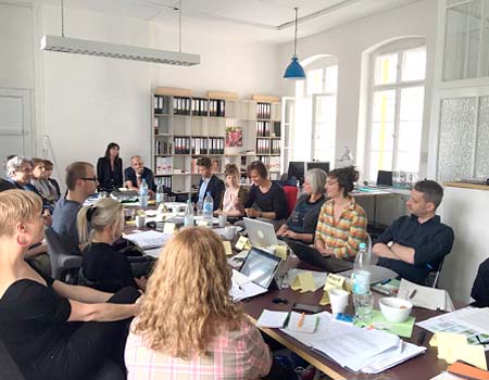 Representatives of the nine partner organisations – directors, project managers, dancers, choreographers, artists, researchers – met in Berlin for two full days to get to know each other and share experiences. We covered topics ranging from dance festivals to financial reporting, from digital documentation to injury prevention, with some project management advice thrown in.